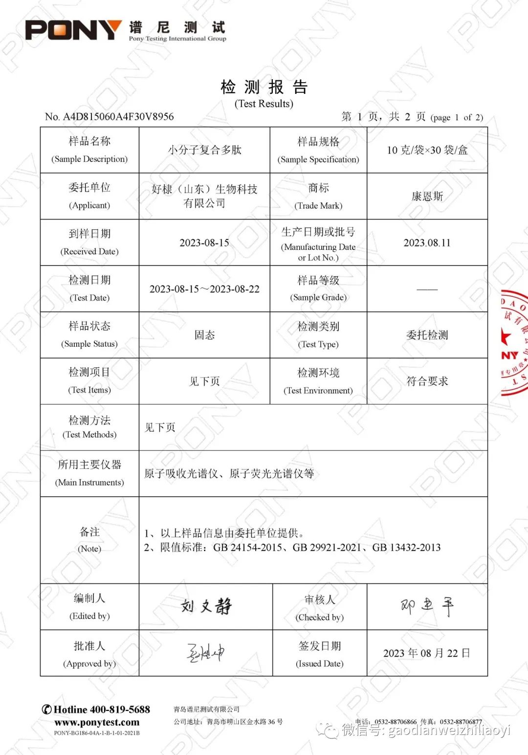 小分子肽是由 2 - 10 個(gè)氨基酸組成、分子量在 1000 道爾頓以下的蛋白質(zhì)水解產(chǎn)物,小分子活性肽具有吸收快、活性高、特異性強(qiáng)、安全性高、穩(wěn)定性好等優(yōu)勢(shì),能在人體生理功能調(diào)節(jié)中發(fā)揮重要作用,具備營(yíng)養(yǎng),調(diào)理,輔助治療三重功能, 能快速修復(fù)細(xì)胞、增強(qiáng)免疫力、延緩衰老等。且小分子復(fù)合多肽為特殊膳食類(lèi)食品。本次產(chǎn)品的升級(jí)將為更多的人帶來(lái)更優(yōu)質(zhì)的營(yíng)養(yǎng)和健康。特膳食品是一種智能化的定向性食品,具有“多元、天然、活性”、“安全、益生、營(yíng)養(yǎng)”的客觀(guān)屬性。經(jīng)科學(xué)系統(tǒng)的定量配比,通過(guò)專(zhuān)門(mén)復(fù)雜的特殊工藝,加工而成具有明確針對(duì)性或特殊指向性的定向性食品。本產(chǎn)品的市場(chǎng)指導(dǎo)價(jià)格為1090/盒